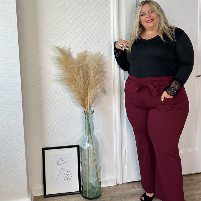 Pantalon bordeaux stretch à coupe évasée
