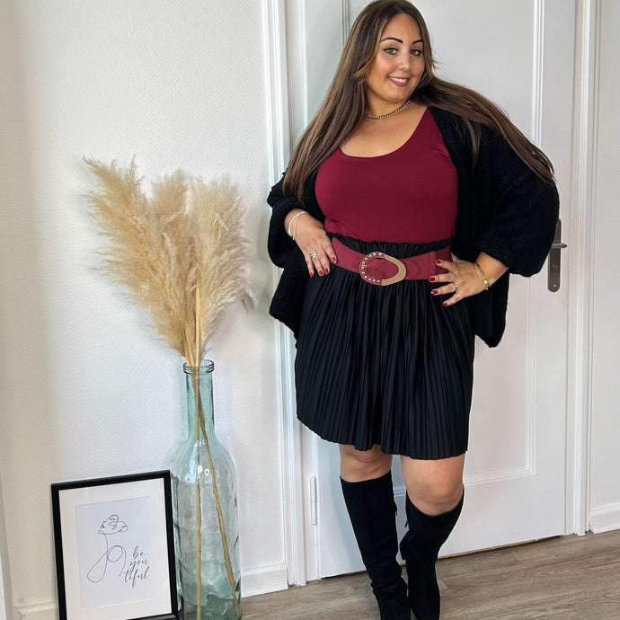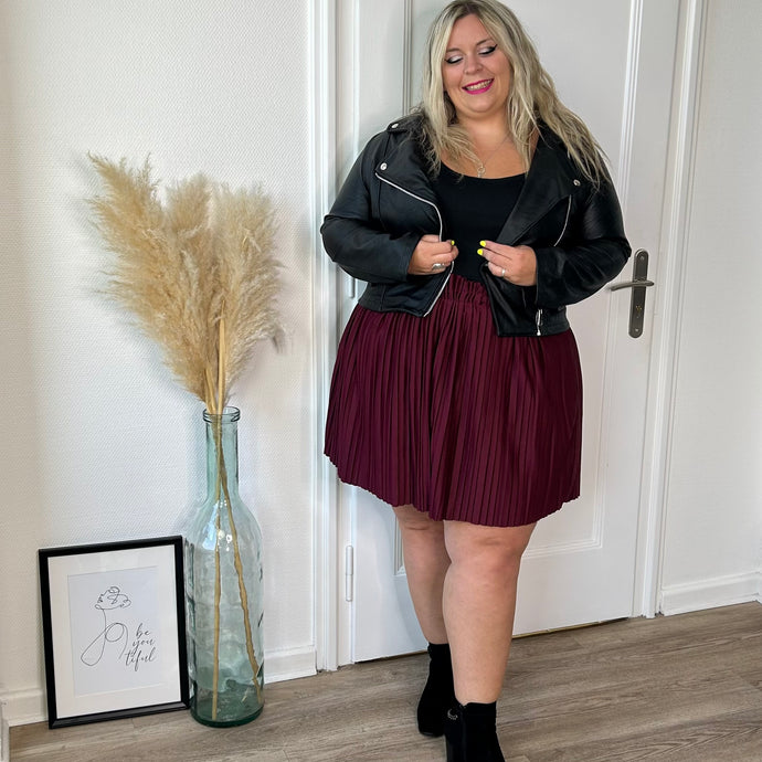 Jupe courte plissée bordeaux