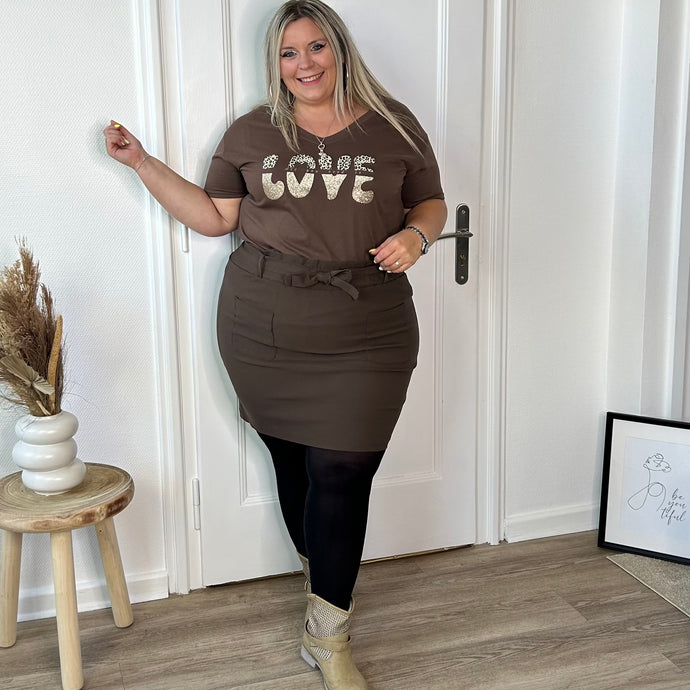 Jupe courte marron ornée d’un nœud