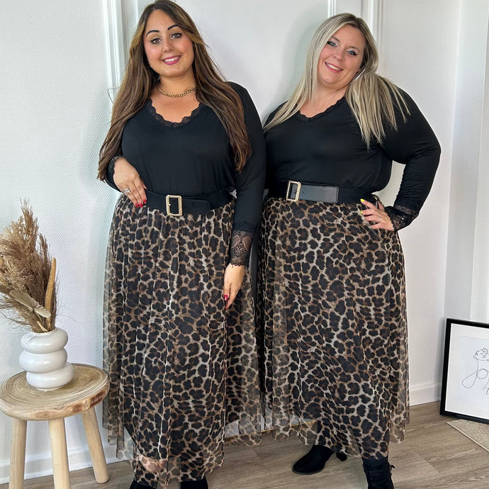 Jupe longue plissée imprimé léopard