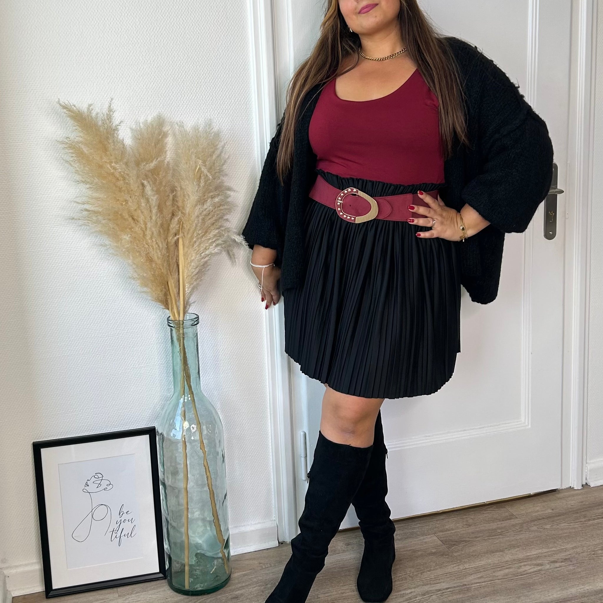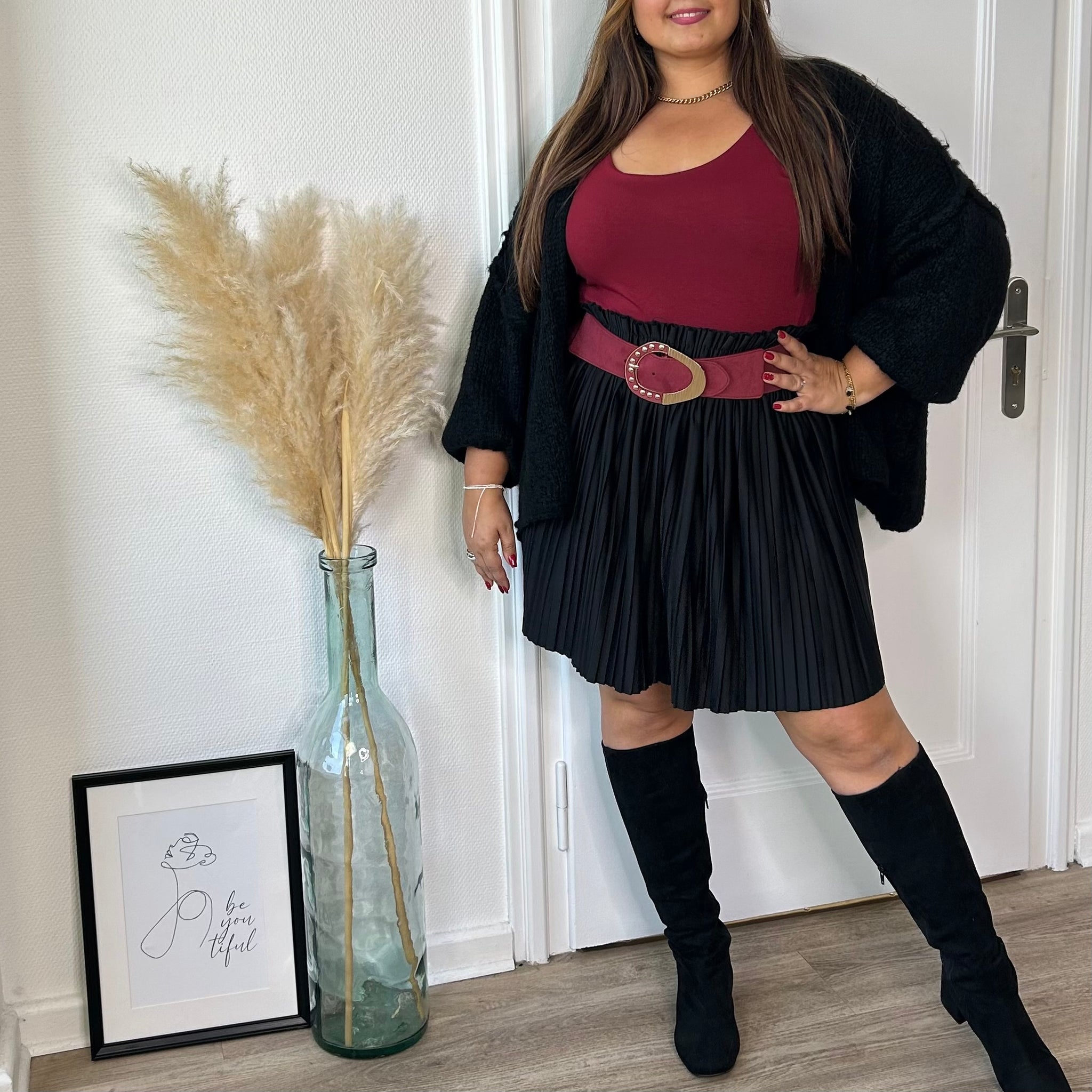 Cette jupe courte plissée noire est une véritable pièce intemporelle. Sa coupe fluide vous permet de vous sentir à l’aise tout en restant chic. 👗