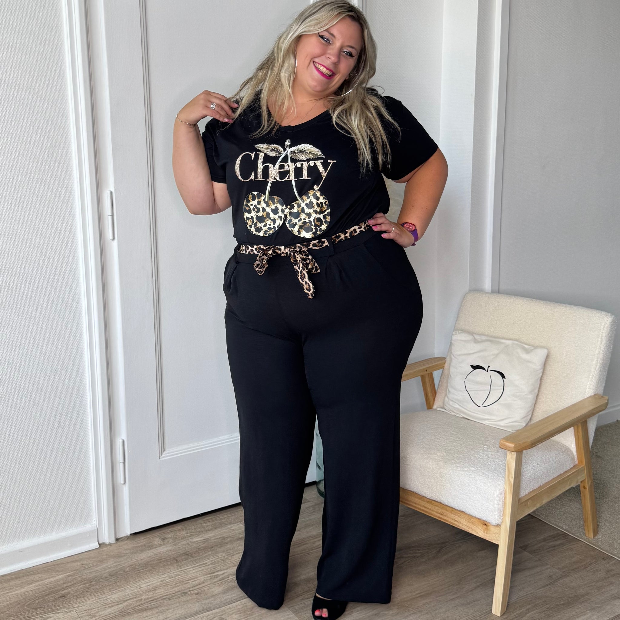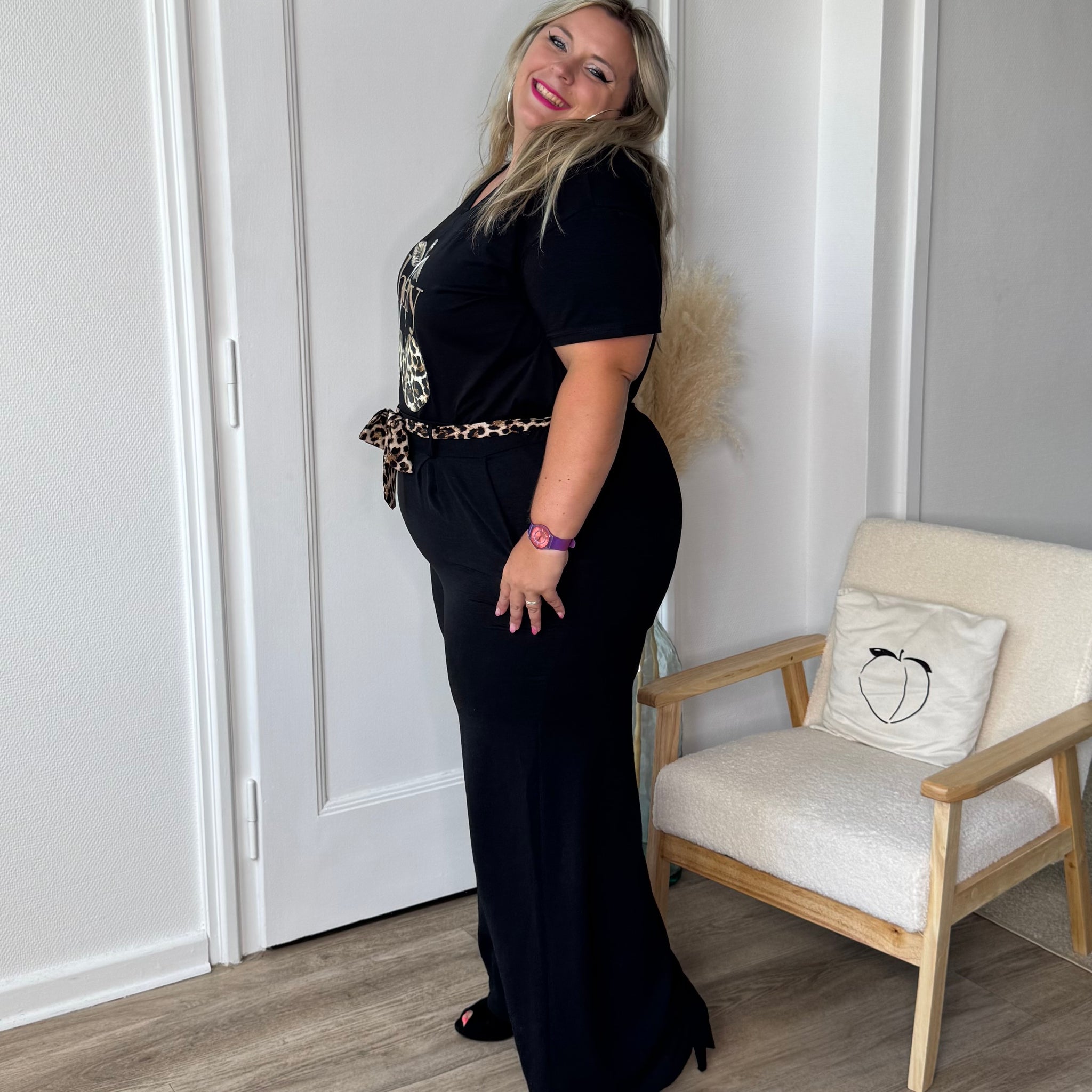 đ€đ Pantalon fluide noir avec ceinture lĂ©opard
