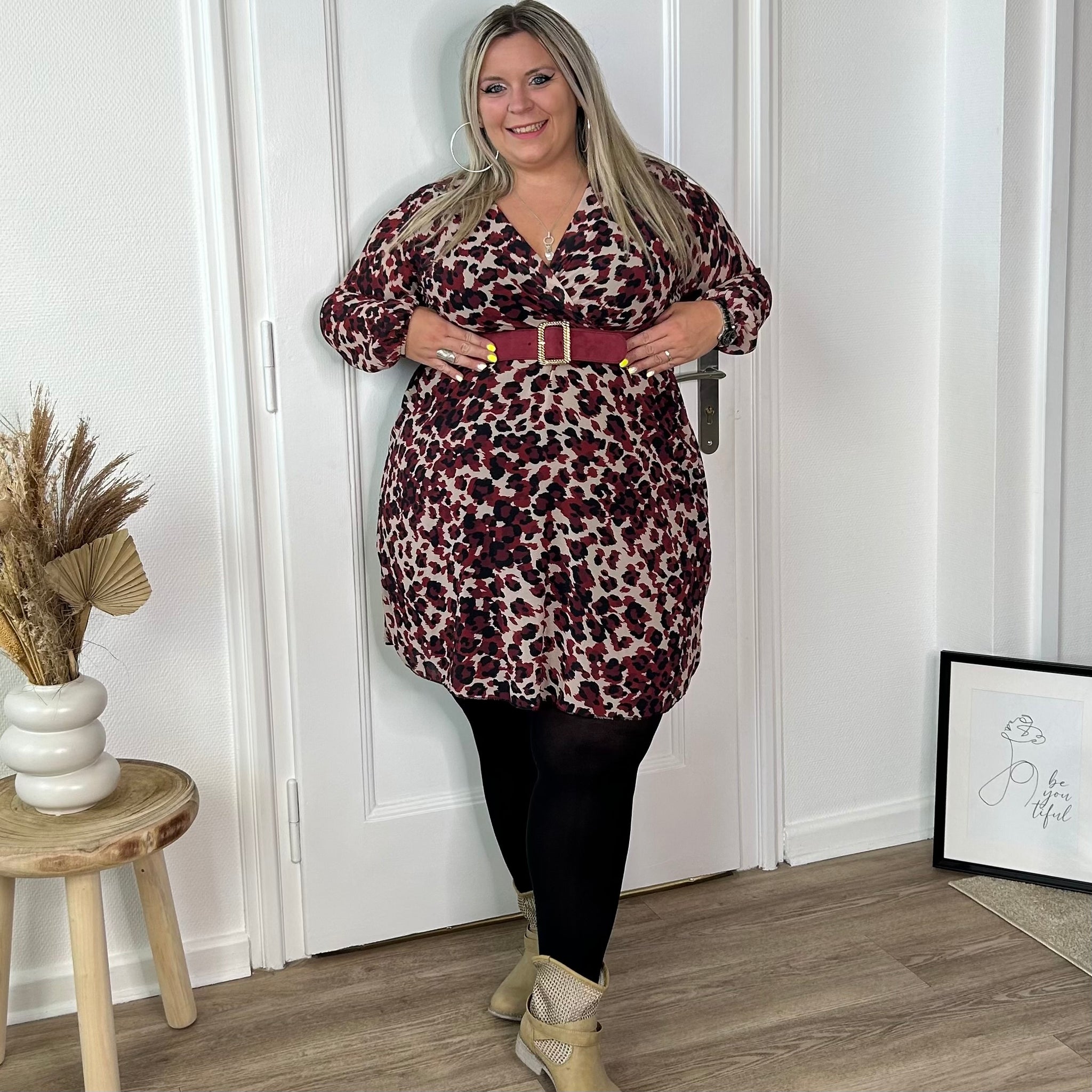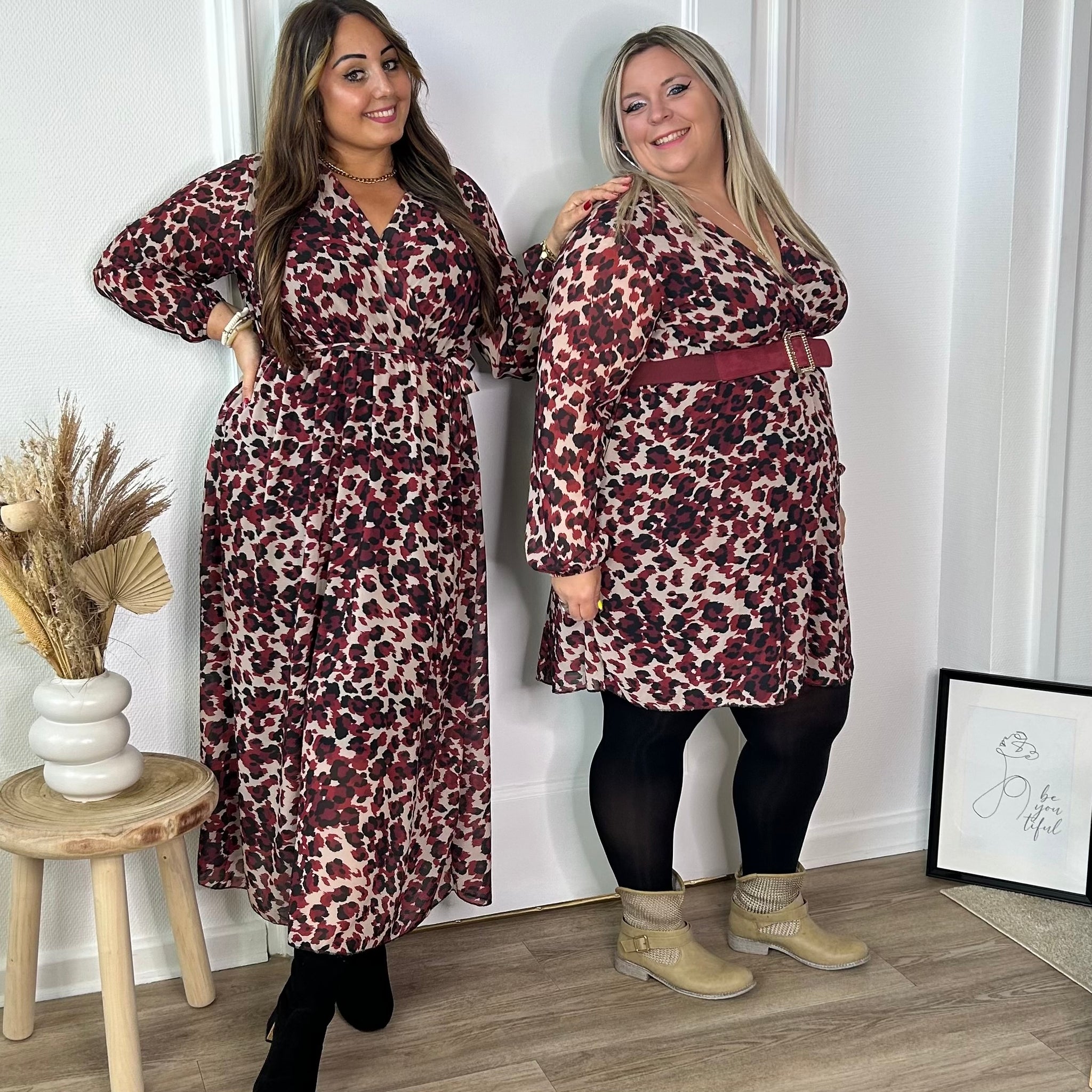 La ceinture bordeaux est vendue séparément. La robe existe en version longue.