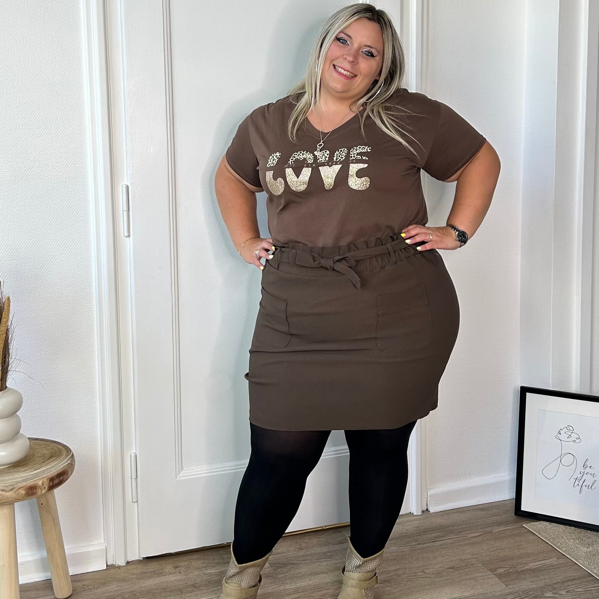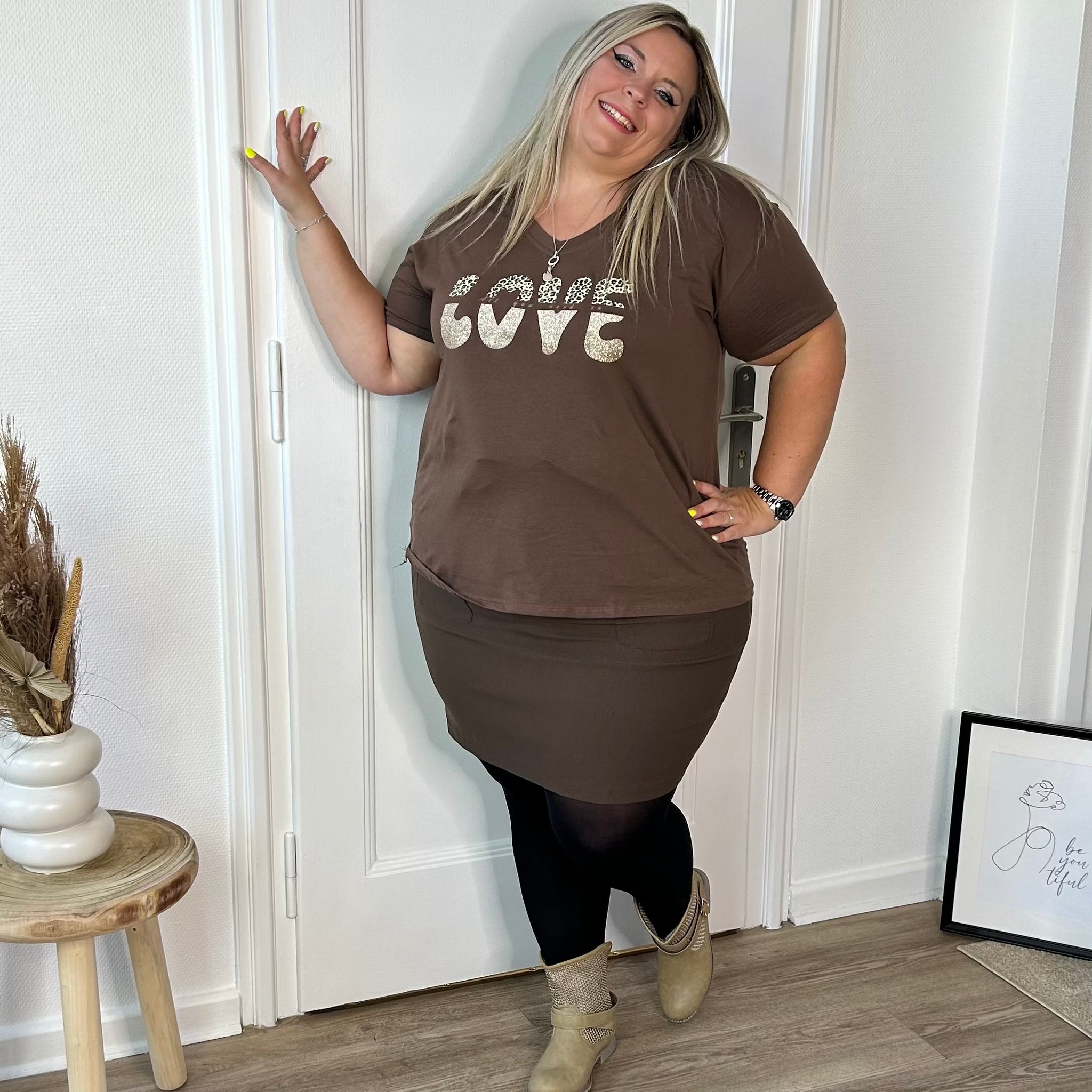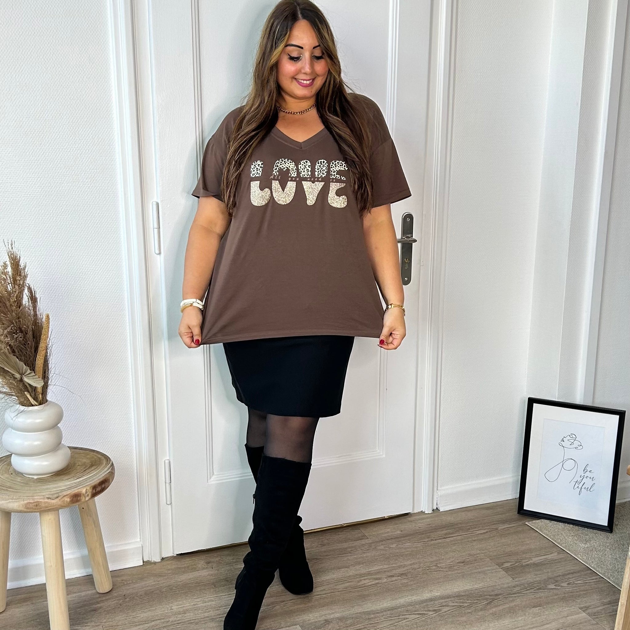 Adoptez une touche de douceur avec notre t-shirt marron délicatement floqué du mot "love" – un essentiel à la fois simple, chic et rempli de bonnes vibes. ✨