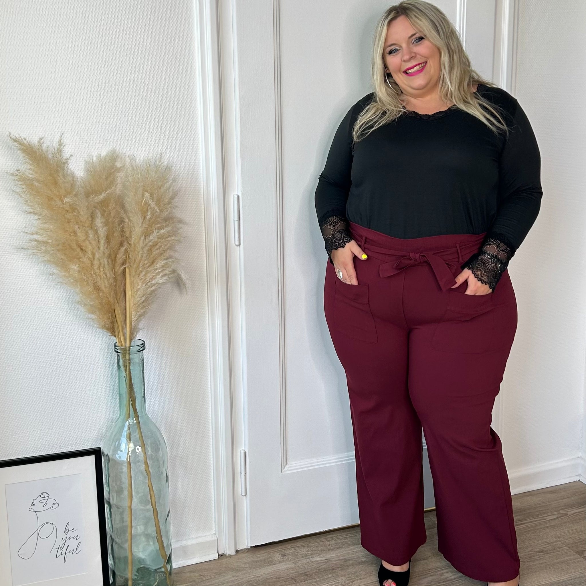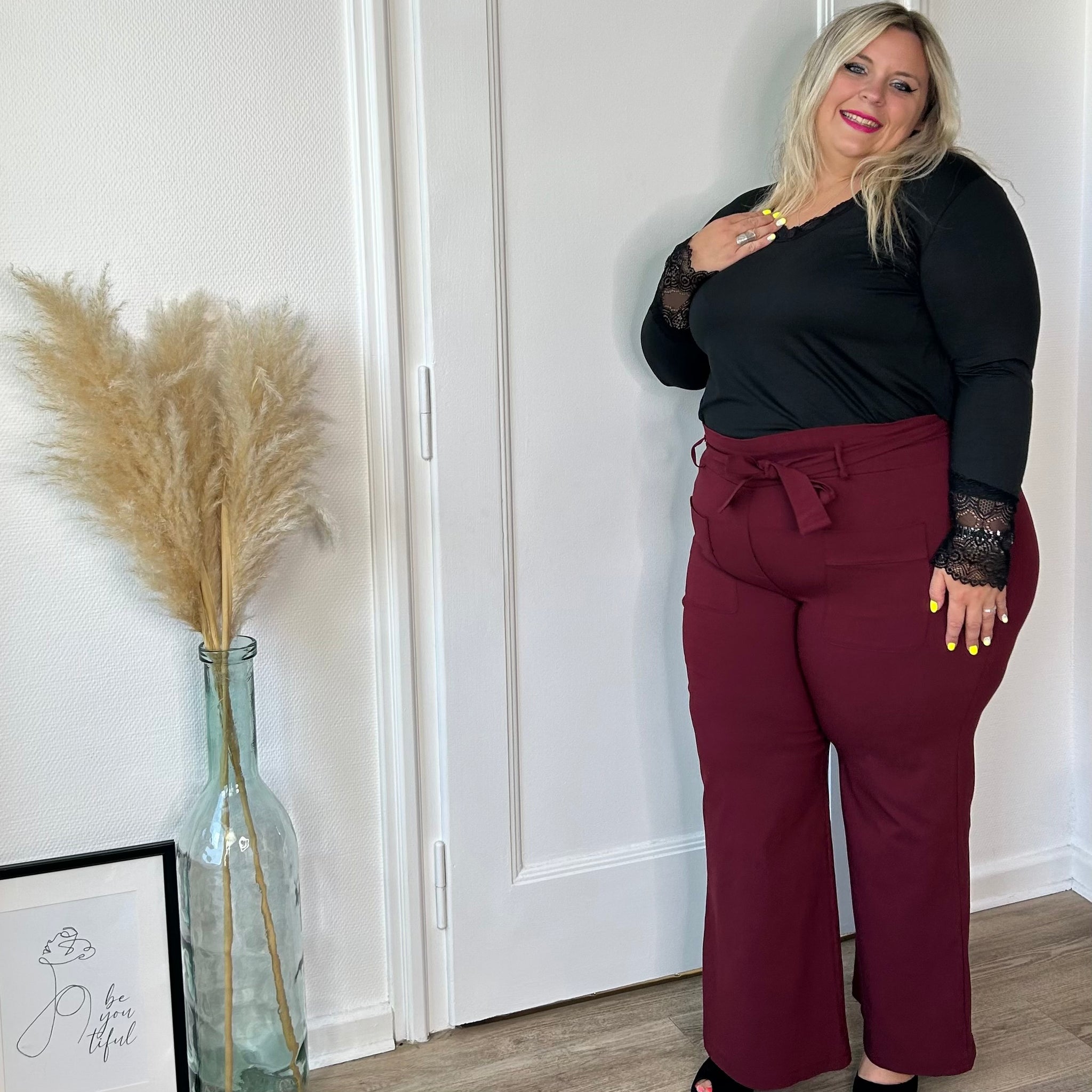 Ce top s’associe parfaitement avec un pull, une jupe, un pantalon ou un jean pour un style à la fois classique et moderne.